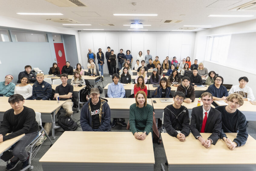駐日ドイツ連邦共和国ペトラ・ジグムント大使は2026年2月17日、テンプル大学ジャパンキャンパス(東京都世田谷区/学長:マシュー・ウィルソン、以下TUJ)を訪問し、ドイツをはじめとするヨーロッパ諸国の外交政策について特別講義を行いました。今回の訪問は、年間最大級の地政学的会議のひとつであるミュンヘン安全保障会議の直後に実現し、特にタイムリーな機会となりました。
